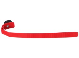 Quick-release strap for towbar-mounted bike carrier, length 38cm - replacement partSturdy quick-release strap made of flexible plastic for securing the bicycle tire to the rail (support track) on the bike carrier using a sliding safety locking…